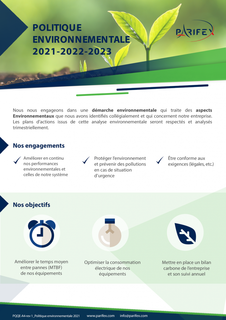 Nous nous engageons à améliorer en continu nos performances environnementales et celles de notre système, à prévenir des pollutions en cas de situation d’urgence et d’être toujours conformes aux exigences légales et autres.